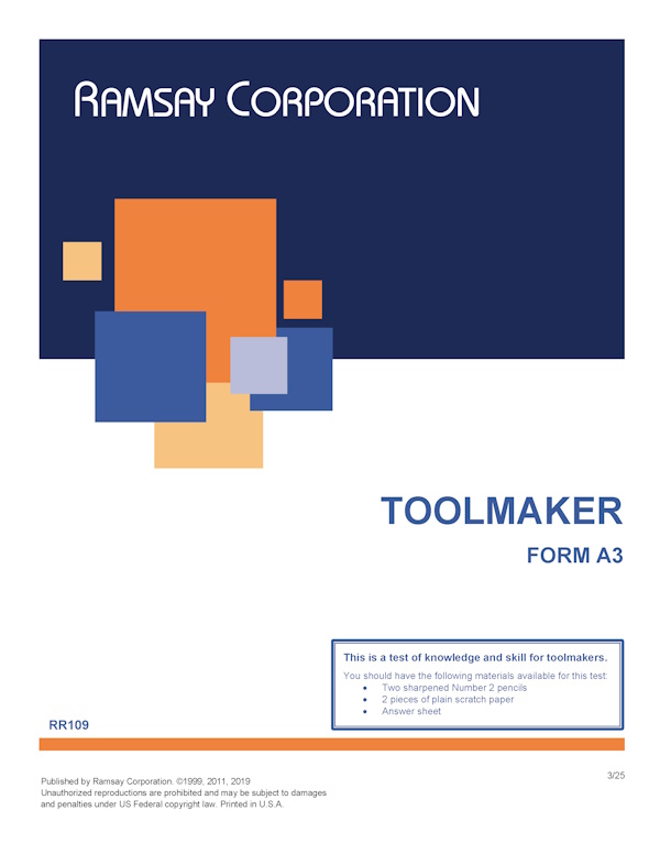 This test is designed to measure the required knowledge and skills for an apprentice or journey-level toolmaker.