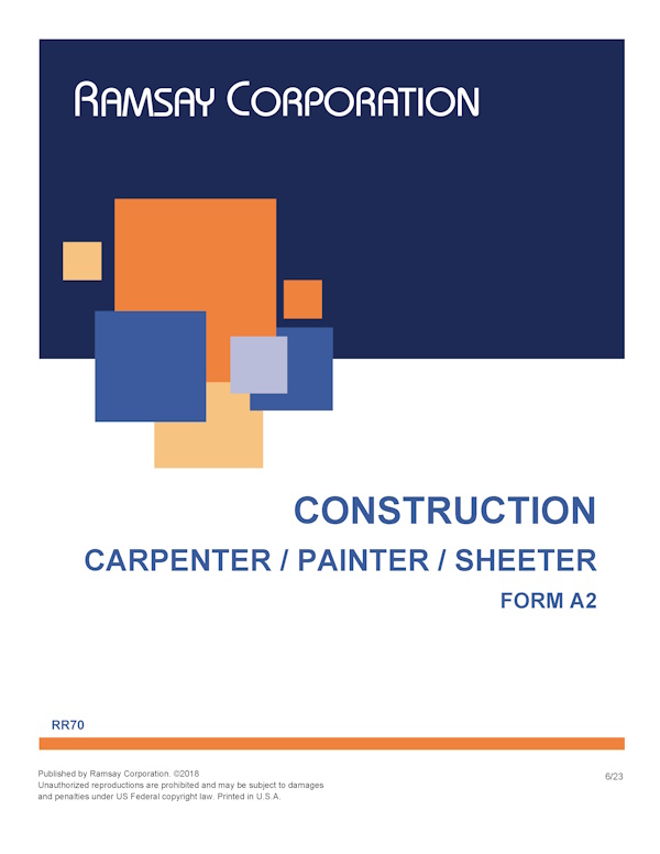 The Construction (Carpenter/Painter/Sheeter) test measures knowledge and skill in the construction area.